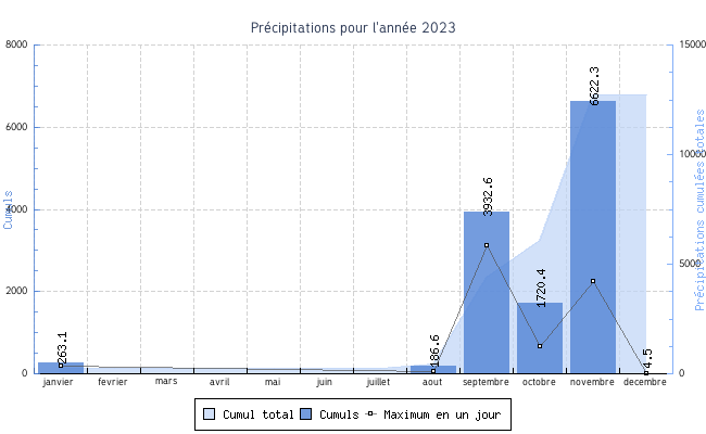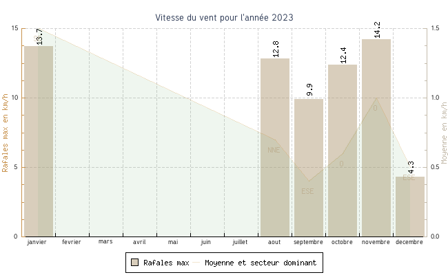 | decembre | 4.5 °C | 4.5 °C | 6.6 °C | 6.6 °C | 5.5 °C | 0.5 km/h | 4.3 km/h | ESE |